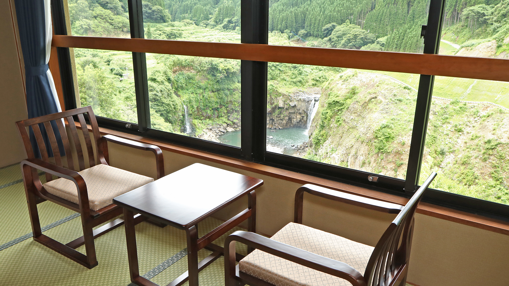 待ち時間があってもロビーや窓から見える滝を眺めたり、お土産を見ていればあっという間に時間になりますよ。